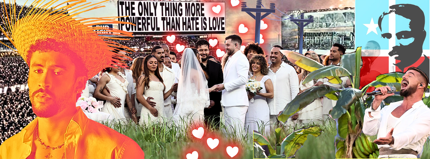 On Sunday, February 8, 2026, 130 million people across the Americas watched a Puerto Rican wedding. Not a simulation. Not a performance about a wedding. An actual ceremony, with vows exchanged, rings placed and a kiss sealed before the world. Families danced. An uncle spun with his niece. Grandparents swayed to salsa. The bride and groom’s joy radiated through Levi’s Stadium in Santa Clara, California, as Bad Bunny (now one of the most streamed artist on Earth) turned the Super Bowl halftime show into something the empire hadn’t anticipated: a celebration of Puerto Rican life so exuberant and so unapologetically itself, that it left the president of the United States sputtering with rage.