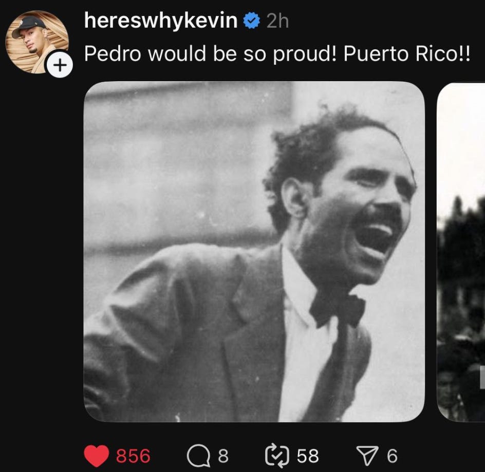Eighty years ago, the United States made it illegal to fly the Puerto Rican flag or sing patriotic songs. The 1948 Ley de la Mordaza (the Gag Law) passed by a territorial legislature aligned with U.S. interests, criminalized Puerto Rican identity itself in order to crush the independence movement. Thousands were arrested. Pedro Albizu Campos was imprisoned and tortured. The flag could get you thrown in jail. On Sunday, Benito Antonio Martínez Ocasio waved that flag on America’s biggest stage, surrounded by Latinos carrying banderas from across the hemisphere, singing entirely in Spanish before 130 million people. This wasn’t permission granted. This was space taken.